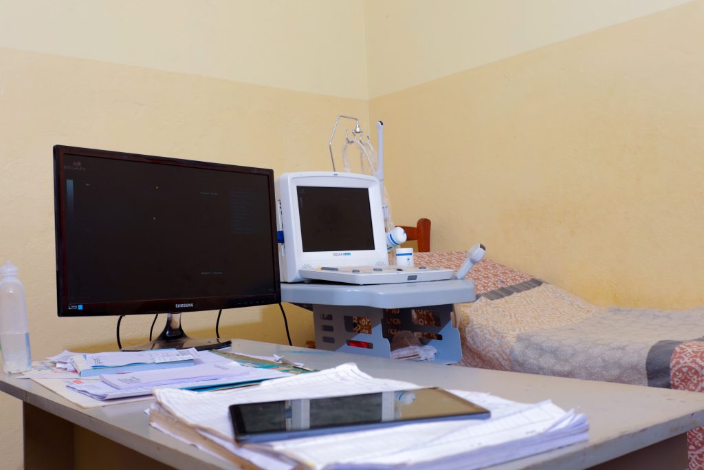 Cette salle est équipée d’un appareil d’échographie moderne de marque EDAN, relié à un moniteur pour une meilleure visualisation des examens. Elle permet au personnel médical de la Clinique Agape d’effectuer des diagnostics précis et rapides, notamment pour le suivi prénatal, les examens abdominaux ou cardiaques.