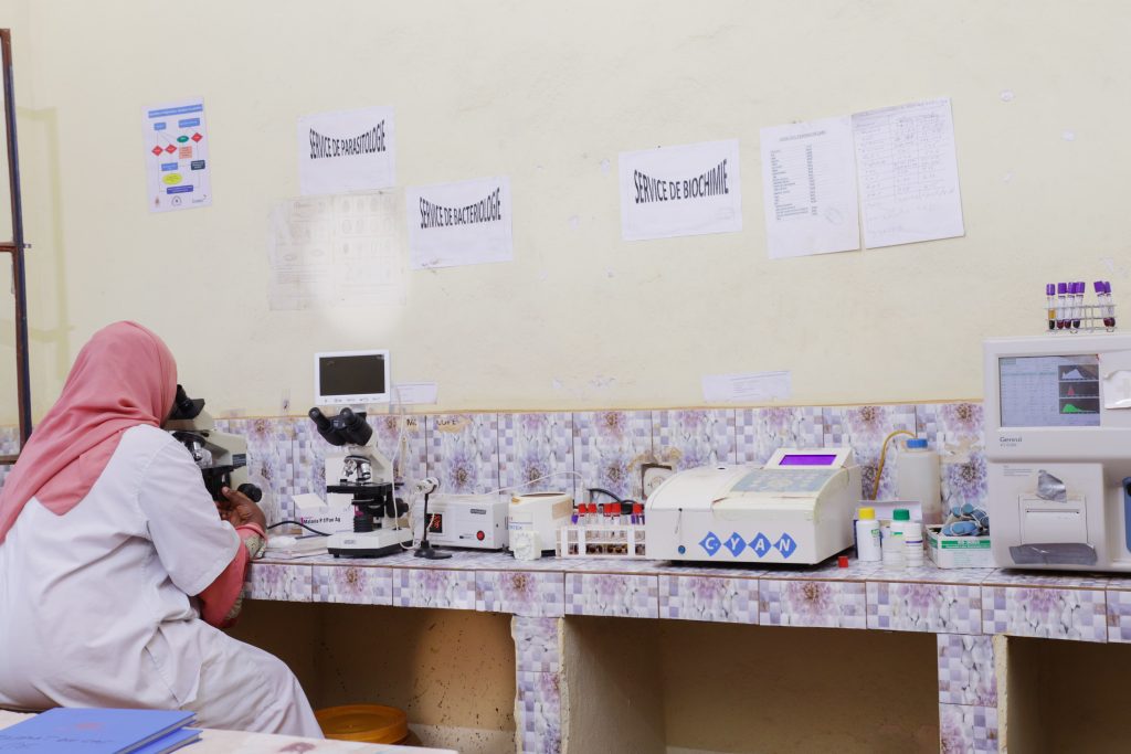 Dans cette salle, une technicienne de laboratoire effectue avec rigueur les analyses biologiques destinées à appuyer le diagnostic médical.